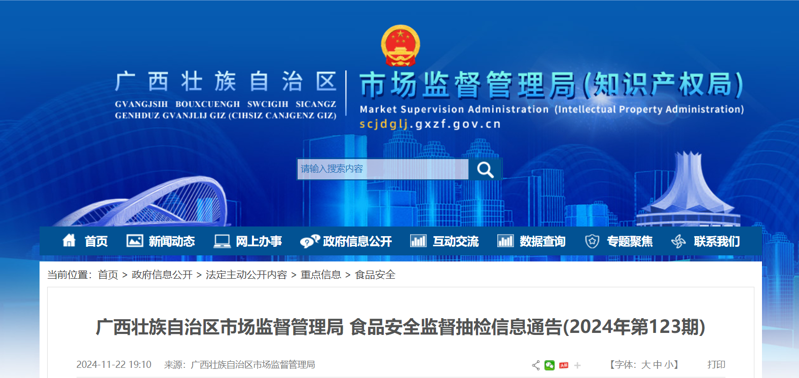 广西壮族自治区市场监督管理局针对抽检发现的问题,已要求属地市场监管部门对不合格样品涉事主体依法处理,督促查清不合格产品的批次、数量、流向,召回不合格产品,采取下架等措施控制风险,分析原因进行整改,并依法予以查处。